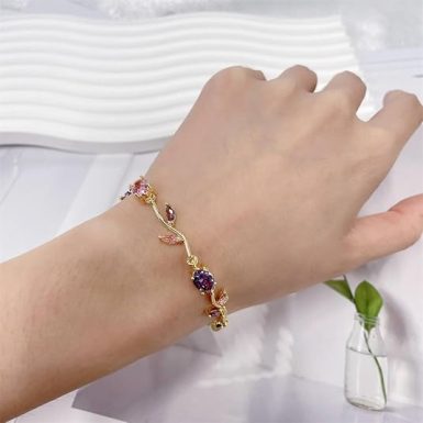 Elegant Design: 14k Gold Plated Bracelet Featuring Delicate Floral Pattern with Oval-Cut Cubic Zirconia Stones in Pink and Purple Hues Premium Materials: Crafted from High-Quality Copper Base with Durable 14k Gold Plating for Lasting Shine and Beauty Perfect Size: Measures 7.48 Inches in Length, Making It an Ideal Fit for Most Wrist Sizes Versatile Style:…